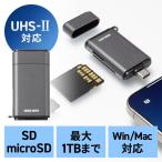 | サンワダイレクト SDカードリーダー USB-C UHS-II 対応 2-in1 SD microSD 同時認識 USB3.0 5Gdps 高速 SDXC/SDHC ガンメタリック 400-ADR337GM |