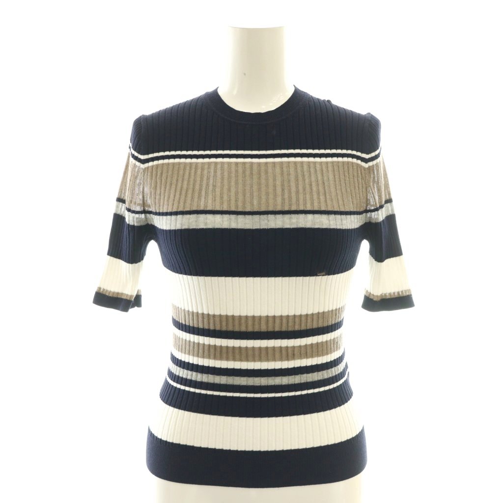 【中古】プラステ PLST 25SS シアーマルチボーダーセーター 五分袖 リブ プルオーバー S 紺 白 モカブラウン /CX ¥1,600 |