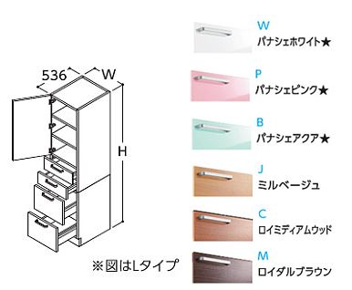 ●TOTO トールキャビネット【LTSWB030BNR1】(W・P・B・J・C・M) Rタイプ(右吊元) サクア 1枚扉 4段引き出し 間口300 洗面ボウル高さ800 ¥60,548 |