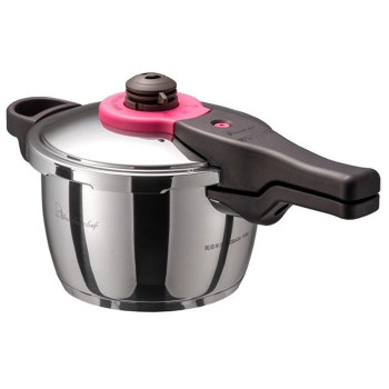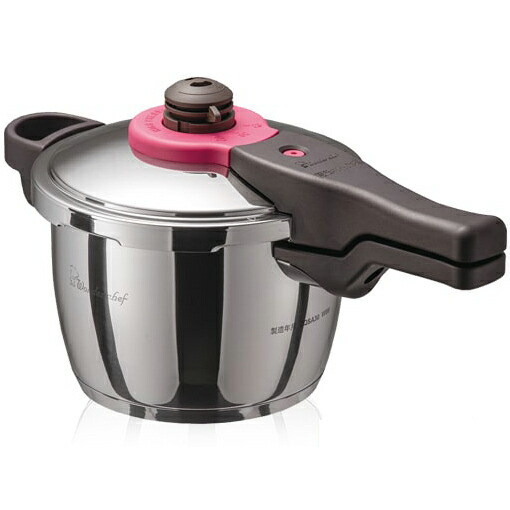 | 取寄せ商品。(お届けまで1週間ほどお時間がかかります。)お取寄せ商品 送料無料(沖縄県、離島は除く)・2〜3人用にぴったりのサイズです。・2台目の圧力鍋として、お手ごろなサイズ。・日本最高クラスの圧力だから、短時間でお料理できます。・食材・調理方法によって超高圧/高圧を切り替えられる調圧おもりを採用しました。・大阪本社工場で、全品加圧検査を行ってから出荷していますIH調理器対応ガスレンジは勿論、IH調理器でも安心してご使用いただけます。2段階圧力調節食材・調理方法によって超高圧(140kPa)/高圧(80kPa)を切り替えられる調圧おもりを採用しました。3つの安心設計魔法のクイック料理には、初めての方でも気軽に調理が楽しめるよう、様々な安全装置が働いています。・圧力調整装置(おもり)・フロート式安全装置・安全装置(内部)底三層構造熱が鍋底全体に、均等に伝わる底三層構造で、焦げ付きにくくなっています。浜田陽子先生のクッキングガイド専用のレシピがあってこそ 美味しくて楽しい圧力鍋。 だからたっぷり100レシピ。 これが家でパパっと作れたら嬉しいな!と思うメニューを中心に、 ホームパーティーにも大活躍すること間違いなしのレシピがたくさん入っています。 料理研究家 浜田陽子先生が今までで一番の自信作と語る、 「作り置きからパーティーまで 高圧&超高圧 大活躍の圧力鍋レシピ100」付き!!作動圧力:超高圧 140kPa(2.38気圧) 高圧 80kPa(1.79気圧)調理温度:超高圧 約126度 高圧 約117度商品サイズ(外寸):約380×210×200mm本体サイズ(内寸):直径約180×130mm商品重量:約2.1kg水の容量(最高水位線):約2.0L水の容量(豆類線):約1.0L白米最大炊量:約3合大豆最大煮量:約300g付属品:浜田陽子著「作り置きからパーティーまで 高圧&超高圧 大活躍の圧力鍋レシピ100」本・ 取扱説明書・蒸しす・掃除ピン生産国:中国※使用済みは返品交換不可 | |