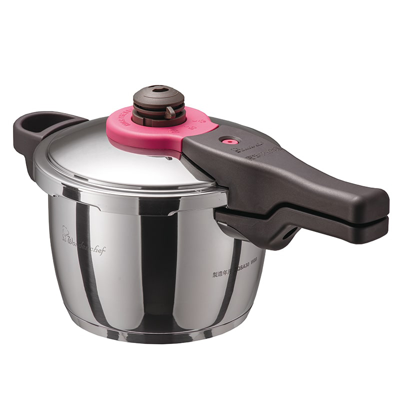 | ★当店の商品は国内検品合格正規ルート品です。 【楽ギフ_包装】【楽ギフ_のし宛書】 ※包装出荷は多少お時間を頂きます ※おまけは商品に同封させていただいております 商品情報 日本最高クラスの超高圧力で調理できる圧力魔法鍋! 超高圧調理で素早く調理できる魔法の圧力鍋! 男性でも女性でもすぐに使えるレシピ100本もセットに!2〜3人用にぴったりのサイズです。 一般的な圧力鍋でも通常の鍋に比べ、はるかに短時間&省エネルギーで調理できますが、魔法のクイック料理 "高圧鍋" は140kpaという日本最高クラスの圧力で、さらに約55〜60%の調理時間で調理が可能。 だから、一般的な圧力鍋よりもさらに調理時間が短縮でき、ガス代・電気代も大幅に節約できる! さらに、圧力切替で一般的な圧力鍋と同じ調理もできるので、一般的なお料理方法に合わせて調理することもできます! ●つまみを操作するだけで、簡単圧力切替! ●安心して使える新SG基準認定商品 ●2台目の圧力鍋としてもおすすめなサイズ ●2-3人用にぴったりのサイズです ●ガスレンジはもちろんIH調理器200Vにも対応 (IH100Vは圧力鍋としては対応不可) ●熱が鍋全体に均等に伝わる底三層構造 ●専用レシピブックには作り置きからパーティーまで幅広く収録! ●価格以上の機能を持った超お買い得鍋です! 魔法のクイックは18cmガラス蓋が対応となります ・ワンダーシェフ3.0L用ガラス蓋(18cm) (・こちらのガラス蓋でもご利用いただけます) ・予備用ゴムパッキンはこちら 魔法のクイック新5.5Lサイズはこちら サイズ(約) 外寸 380×210×200mm 内寸 180×130mm 重さ/2.1kg 水の容量(最高水位線)/2L 水の容量(豆類腺)/1L 白米最大炊量/3合 大豆最大煮量/約300g 材質 側面/ステンレス鋼 底面/ステンレス鋼、アルミニウム、ステンレス鋼 (3層構造) 取っ手/フェノール樹脂、ナイロン、シリコンゴム 配送区分 【送料無料】【同梱OK】 備考 内圧・・140kpa(2.38気圧(大気圧1と鍋内気圧1.38を合わせた数値)) 生産国/中国製 付属品・・・浜田陽子著「作り置きからパーティーまで高圧&超高圧大活躍の圧力鍋レシピ100」本・ 取扱説明書・蒸しす・掃除ピン メーカー保障期間…製造、または購入より1年 こんな方におすすめ 両手高圧力鍋 料理本付 高圧力鍋 片手高圧力鍋 圧力鍋 鍋 調理鍋 圧力釜 多用鍋 茹で用鍋 豚 角煮 スペアリブ カレー 肉じゃが 電磁調理器 IH対応 オール熱源対応 すのこ 新生活 両手鍋 省エネ 省エネルギー 節約 電気代 ガス代 レンジ 蒸し器 ヘルシー エコ エコロジー商品 ダイエット ワンダーシェフ 伊藤アルミニウム工業 ワンダーシェフ Wonder chef 両手圧力鍋 魔法のクイック料理 魔法の一分料理鍋 圧力鍋 カラー圧力鍋 IH対応 ワンダーシェフ魔法のクイック料理5.5L 包装 のし 熨斗 対応 のし対応 福袋 結婚祝い 出産祝い 誕生日祝い 内祝い 省エネ 電気 圧力鍋 電気代 引越し祝い 仏事 弔辞 母の日 敬老の日 楽天ランキング 2009年 2010年 2011年 2012年 2013年度 楽天 上半期 年間 ランキング 受賞 入賞 ランクイン 節電 通販 話題 贈物 プレゼント ギフト としてすべて日本国内工場で再検品した合格品です。 「誰もが安心して使える圧力鍋をお届けするために。」 高圧力鍋はその圧力の高さからも取り扱いに不安を感じる方がいるかもしれません。 この商品はメーカーで出荷前にすべての圧力鍋を、専用の品質チェック施設で厳しく検査しています。 製造工場から届いた圧力鍋は、そのままでも商品として充分に販売できる高品質なものですが、万全を期すためにネジを1本1本締めなおし、ひとつひとつ実際に圧力をかけて安全性を確認しています。チェック項目は本体、ふた、作動、そして梱包まで非常に細かく、膨大な数。もう一度、はじめからつくりなおすのと変わらない、いや、それ以上の手間をかけたチェックを通過して、高圧力鍋は商品になるのです。 安全性を追求するのに、「しつこすぎる」ことなどありません。万が一を、限りなくゼロに近づけたい。そんな思いが詰まった調理道具です。 「圧力鍋を、ずっと一緒にくらしていくパートナーとして扱ってほしいから。」 メーカーの点検サービスでは、パッキンなどの傷みやすいパーツのコンディションはもちろん、加圧検査などで安全性もしっかりチェック。最後は必ずピカピカに磨いてお客さまのもとにお返ししています。 他にも、どんなささいなことでもお答えするお客様相談室、定められた期間中なら何度でも部品の交換や修理ができる保証制度(※消耗品を除く、製品に起因する不具合の場合)など。すべて、お客さまの視点にたつことで生まれたサービスです。商品をつくるときはもちろん、お届けしてからも、お客さまのために。 アフターサービスの充実も、品質だと考えています。 片手 3.0L クリックで商品ページへ 両手 5.5L クリックで商品ページへ ■ガラス蓋は別売りとなります 魔法のクイック3.0Lは18cmガラス蓋が対応となります ・ワンダーシェフ純正3.0L用ガラス蓋(18cm)(箱入) ・こちらのガラス蓋でも