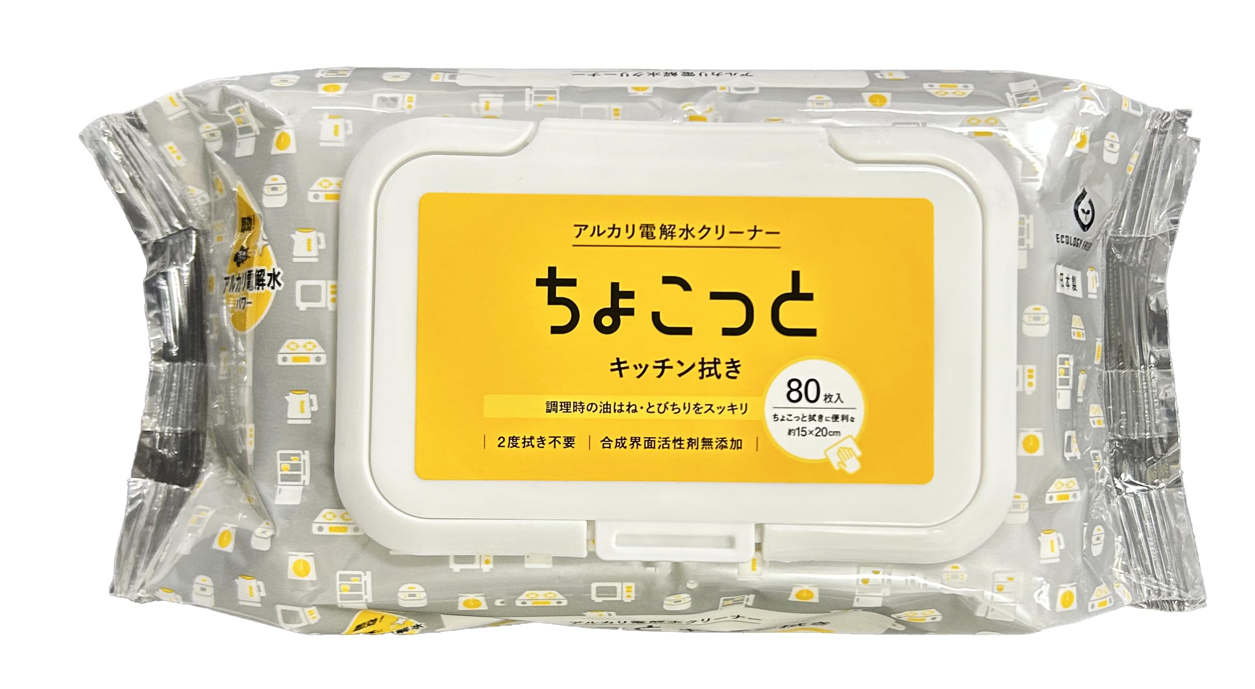 服部製紙 清掃シート アルカリ電解水クリーナーキッチンのちょこっと拭き用 80枚 シートサイズ約150×200? 除菌 合成界面活性剤不使用 N