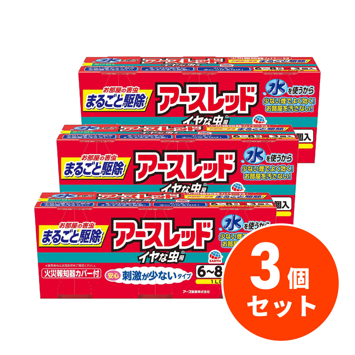 | アースレッド イヤな虫用 くん煙剤 水 6~8畳用 3個パック 害虫 駆除 虫 駆除剤 燻煙剤 引っ越し 害虫対策 室内 |