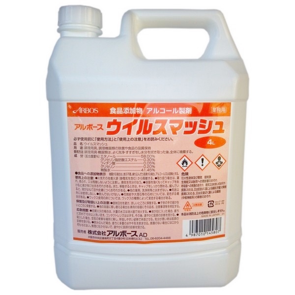 【期間限定P5倍】 アルボース アルコール製剤 ウイルスマッシュ 4L ¥4,050 |