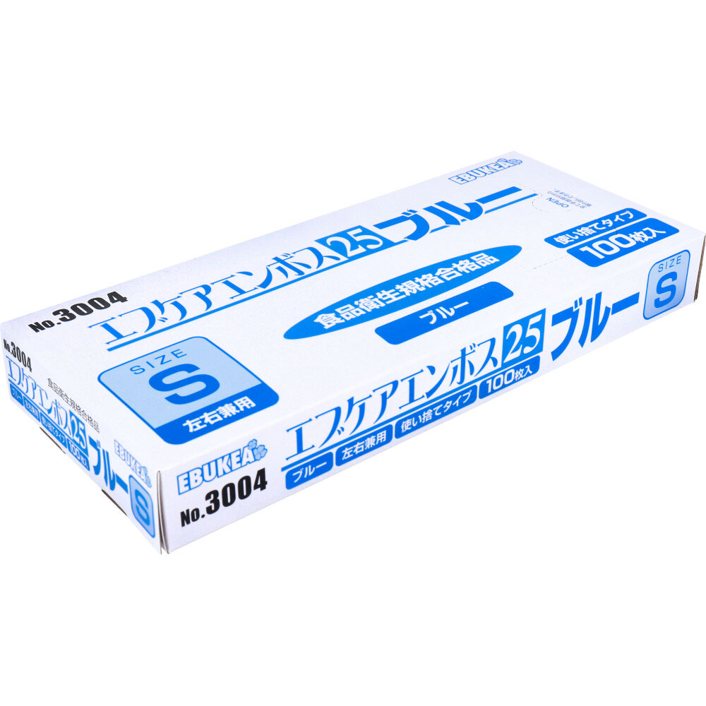 業務用 No.3004 エブケアエンボス25 食品衛生法適合 使い捨て手袋ブルー Sサイズ 箱入 100枚入[倉庫区分OC] ¥255 |