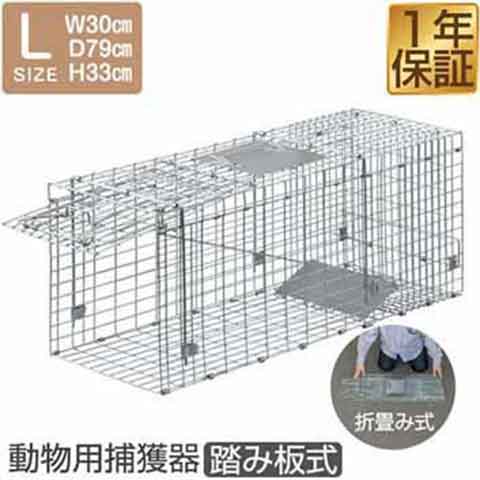 動物 捕獲器 Lサイズ 30x79x33cm 小動物 猫用 踏板式 バネ式 飼い猫 迷子猫 野良猫 小動物 保護 捕獲 動物捕獲器 動物用捕獲器 吊りエサ ¥4,180 |