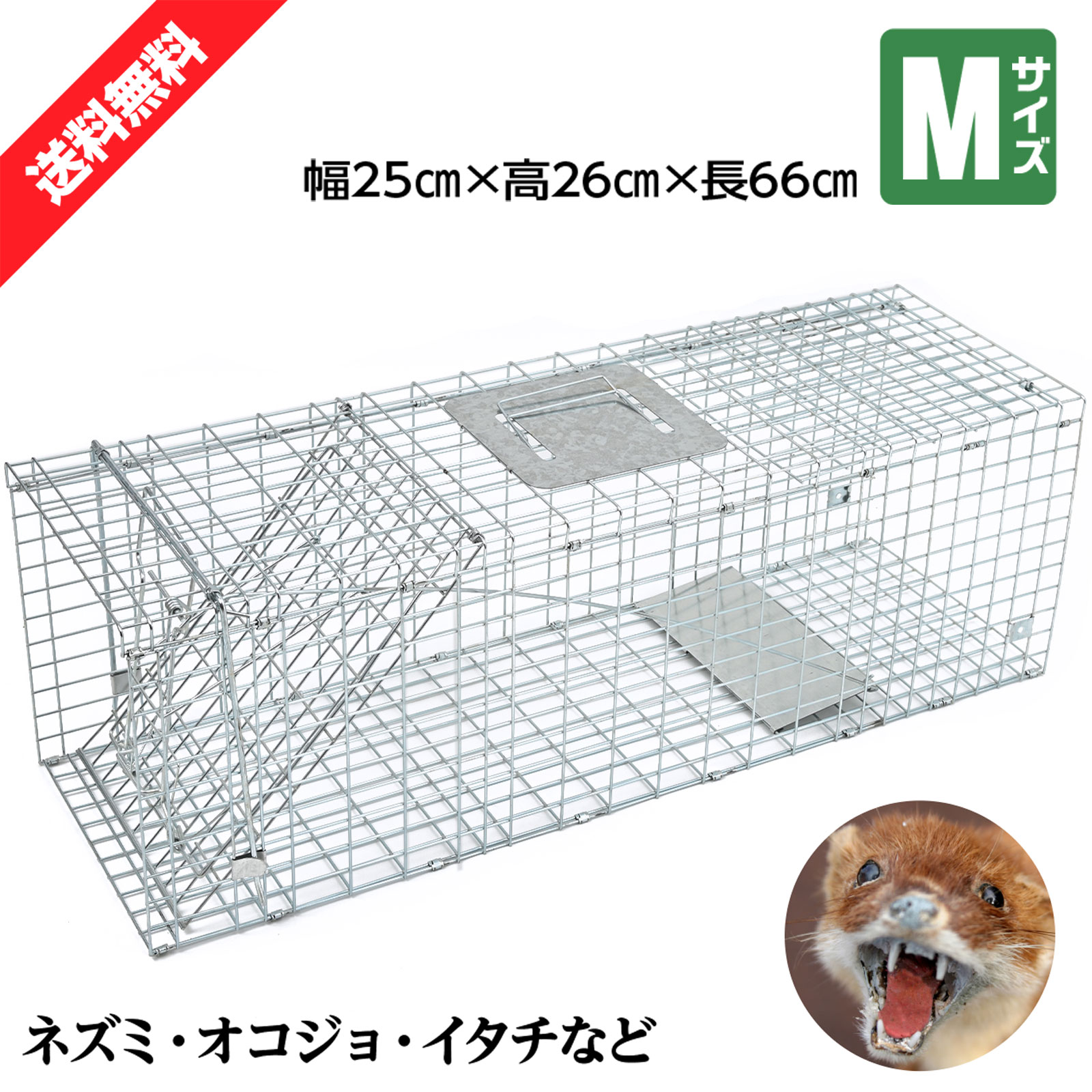 動物捕獲器 動物捕獲檻 猫 アニマルトラップ Mサイズ 66cm×26cm×23cmトラップ 箱罠 イタチ 駆除 捕獲 踏板式 捕獲機 動物 小動物 子猫 ¥4,281 |