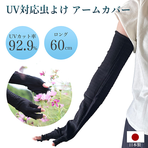 送料無料 UVカット率92% 防蚊加工 虫よけ アームカバー ロング 日本製 60cm UVカット 日焼け対策 保湿 防虫 蚊除け 手 腕 虫除け 自転車 ¥1,990 |