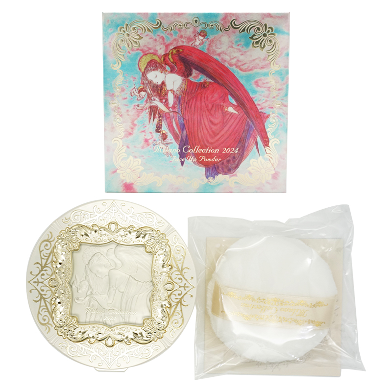 | ブランド史上初、アーティストコラボレーション。キメ細やかな肌に仕上げる高機能フェースパウダー。 世界的アーティスト天野喜孝氏とのコラボレーション。 繊細な輝きを秘めた透明感。 しっとり心地よい感触で肌を包み込み、ベールをまとったようなキメ細かい肌に仕上げる高機能フェースパウダー。 繊細な輝きを秘めたパウダーが、ファンデーションを優しくフィットさせ、つけたての美しさを持続。 「描く幸せ」をテーマに、ミラノコレクションのクラシカルな世界観と天野喜孝氏のファンタジーな美しさで、芸術性を高めた特別デザイン。 使い方 ●ファンデーションで仕上げた後に、添付のパフにパウダーをとり、お肌に軽くおさえるようにしてつけていきます。 ●お化粧直しには、まず余分な皮脂や汗をティッシュペーパー等で軽くおさえてからお使いください。 ●同梱の透明シートはお捨てにならず、パフ置きとしてケースの中に収納してお使いください。透明シートは、内側のシートをはがし、内側のシートの切り込み部分を立ててお使いください。(外側のシートはお捨てください。) ●使い終わった中皿は、ケース底の穴をピンなどで押して取り出すことができます。 | |