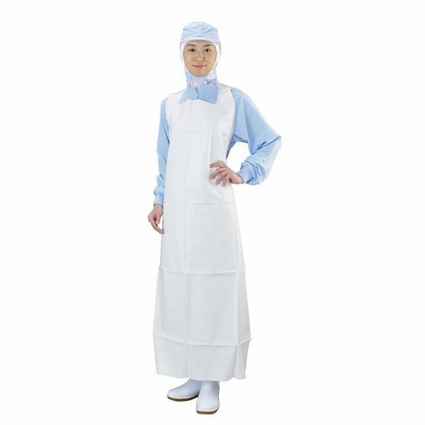 | メーカー:ホワイトマックス 品番:E-50ホワイトL カビが生えにくく衛生的、丈夫なウレタンエプロン。 <使用例> | |
