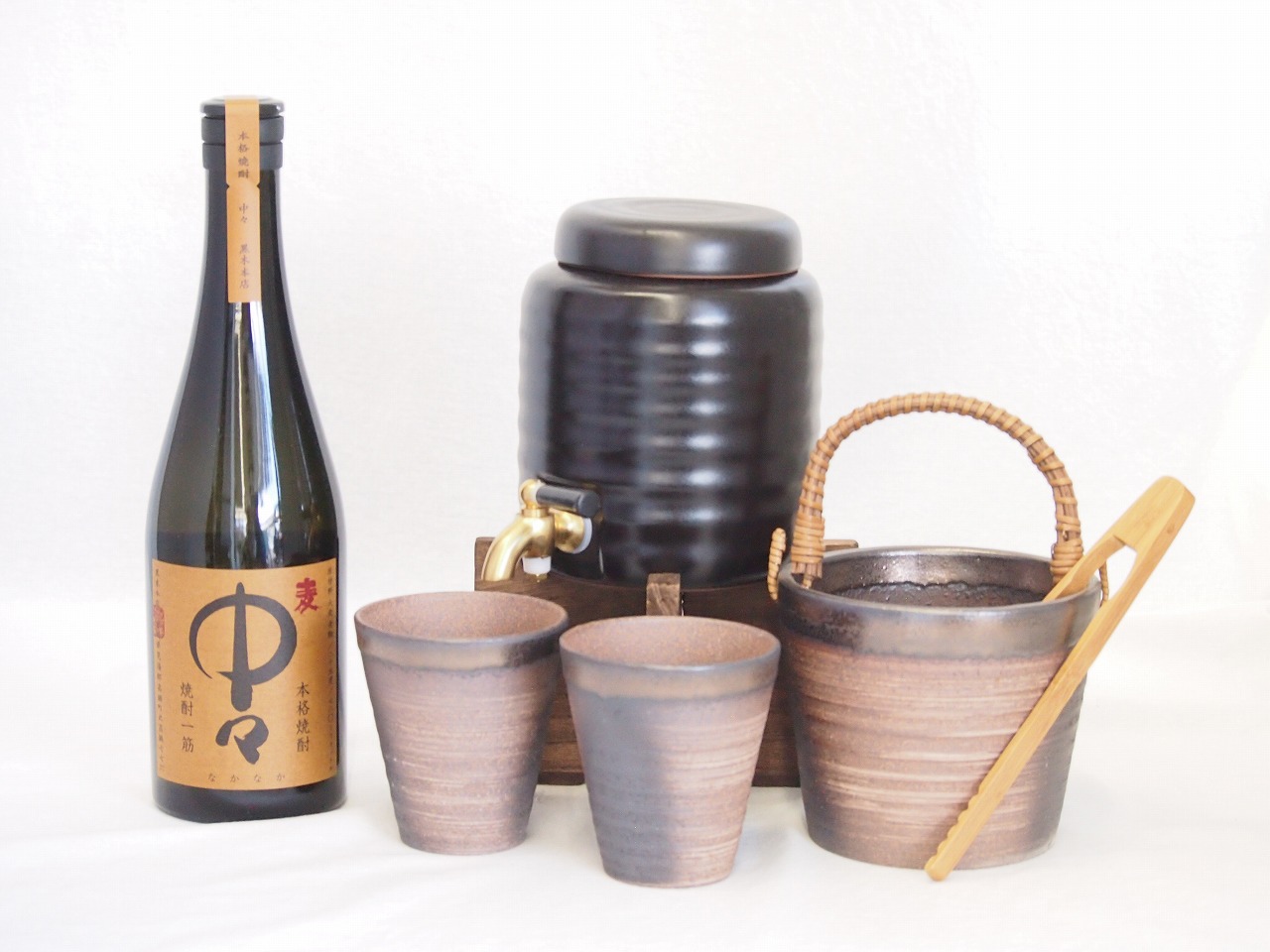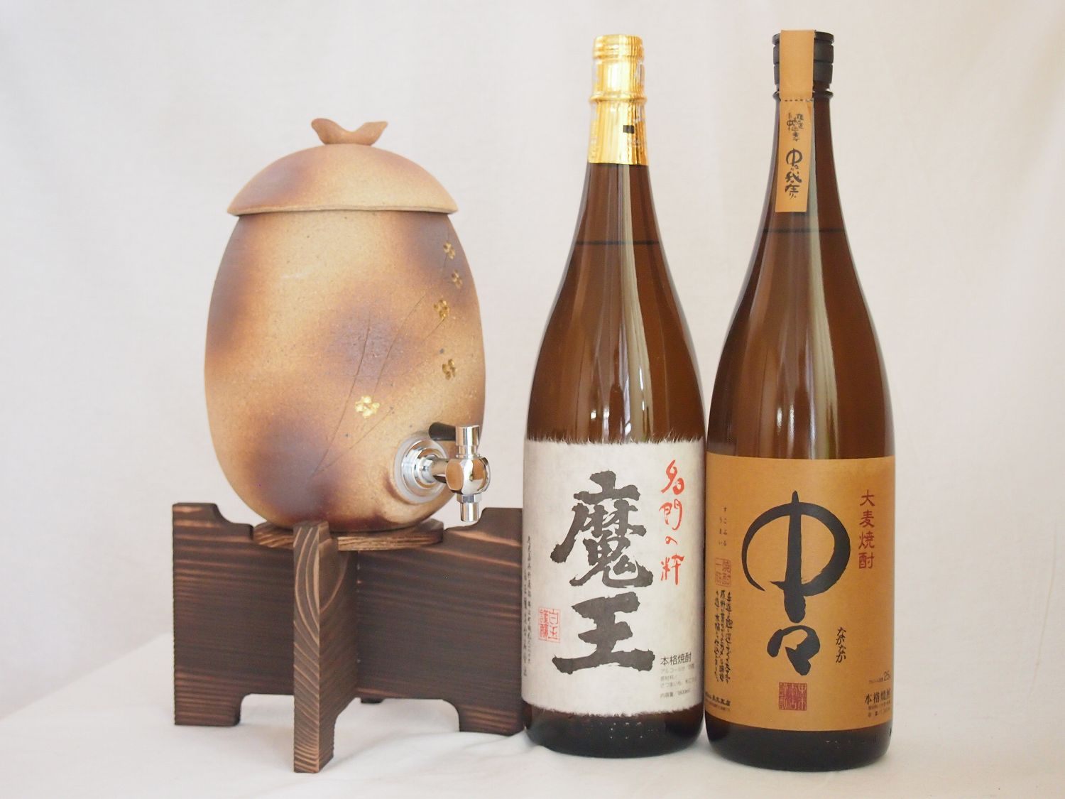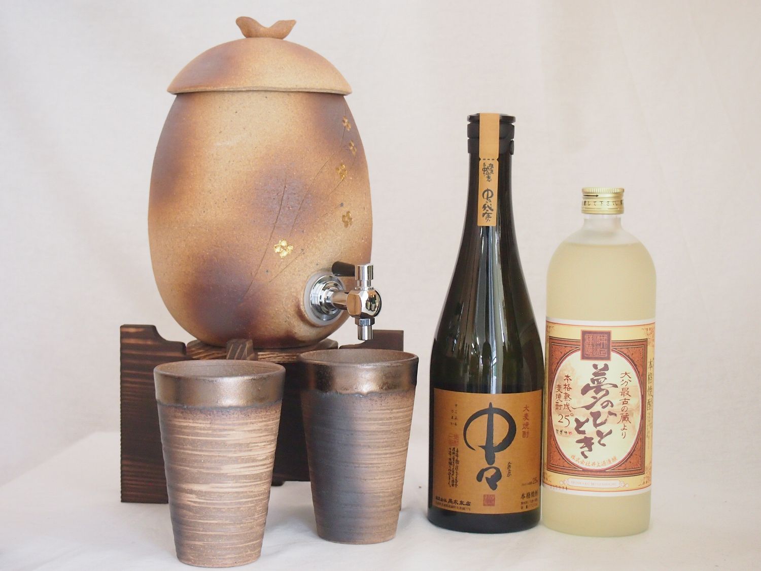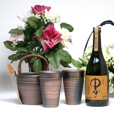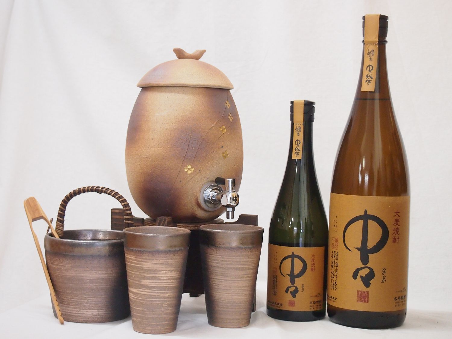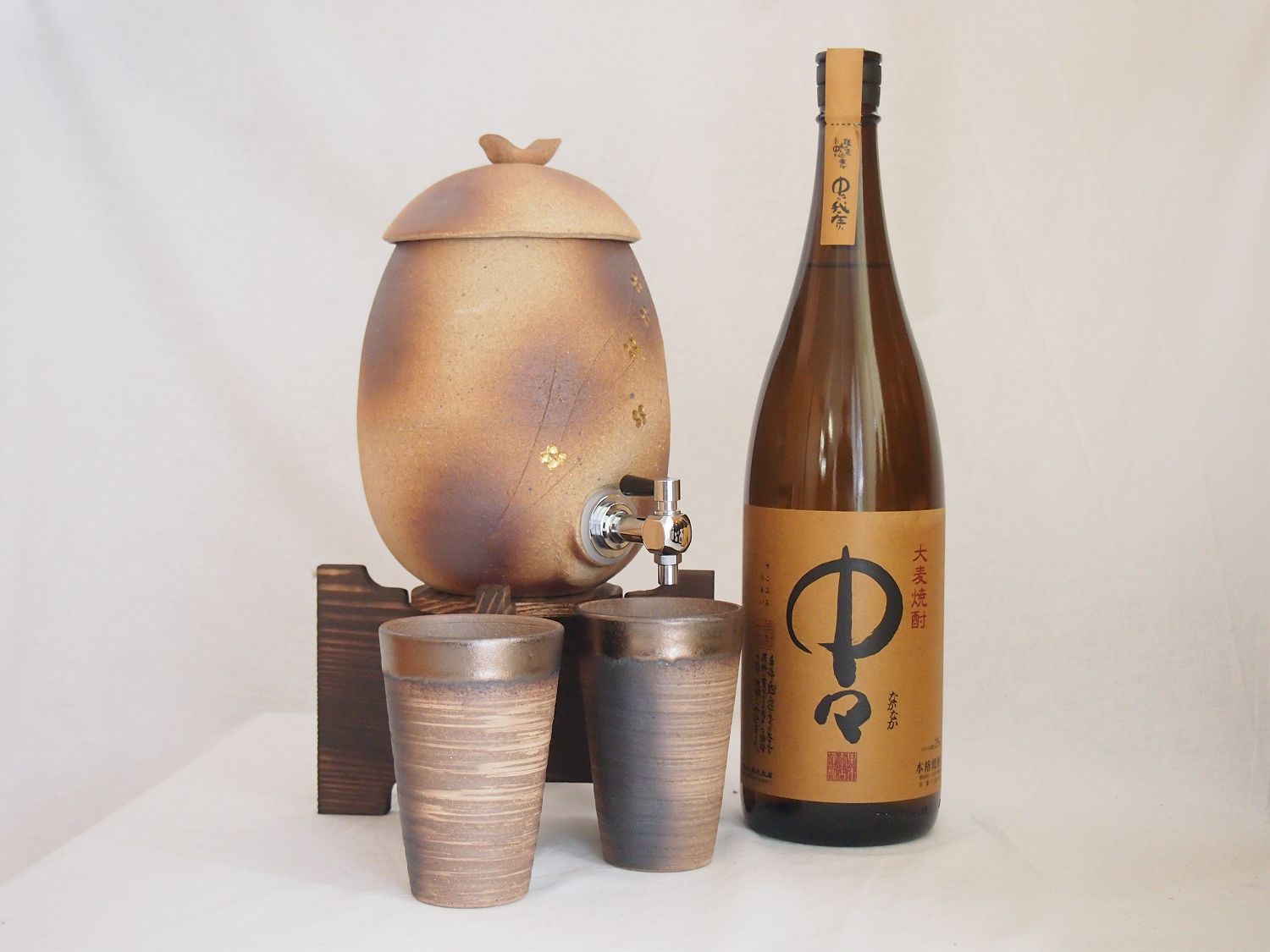 信楽焼・明山窯 焼酎サーバー 火色金小紋 2200cc(滋賀県)+萬古焼・備前金彩焼酎ペアカップ(三重県)+芋焼酎 中々 麦焼酎 5年長期熟 ¥36,696 |