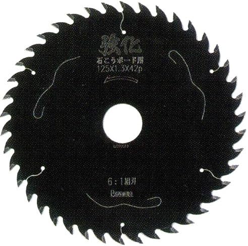 | 特長 0.8mmの薄刃で軽快に作業が出来ます。 6:1組刃で切断時の直進性とハケ・仕上がりが向上。 特殊超硬チップで耐久性はトップクラス。 用途 石こうボード・化粧石こうボード・ケイカル板・ノンアスベストボード・ラスボードなど。 仕様 ・切断能力(mm)石こうボード:39 ・外径(mm):125 ・刃厚(mm):0.8 ・穴径(mm):20 ・刃数:42 ・最高使用回転数(rpm):9000 | |