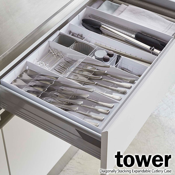 山崎実業 tower タワー 立体横伸縮 カトラリーケース ホワイト 5415 | カトラリー 収納 箸入れ 横幅 伸縮 仕切り キッチンツール キッチン小物 収納 シンプル おしゃれ ¥3,960 |