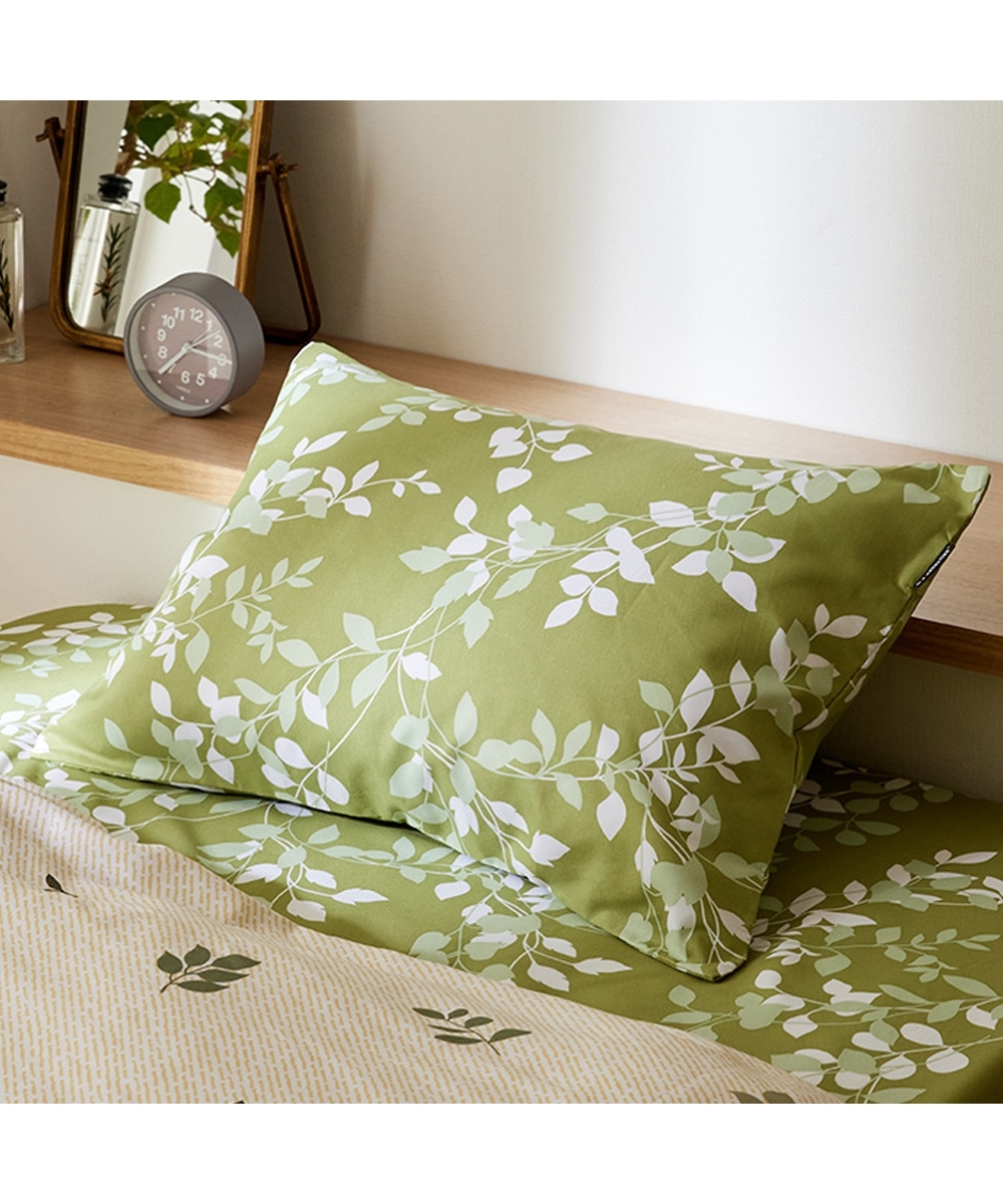 枕カバー リーフ柄 合わせ式タイプ グリーン系/ネイビー系 43×63cm用 寝装 寝具 ニッセン nissen ¥590 |