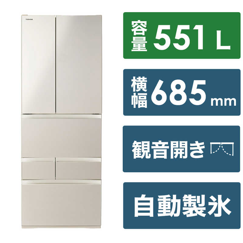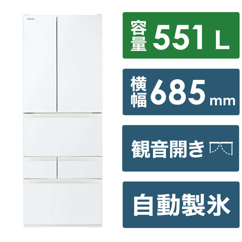 東芝 TOSHIBA 冷蔵庫 6ドア フレンチドア(観音開き) 551L GR-V550FH-EW グランホワイト(標準設置無料) ¥202,417 |