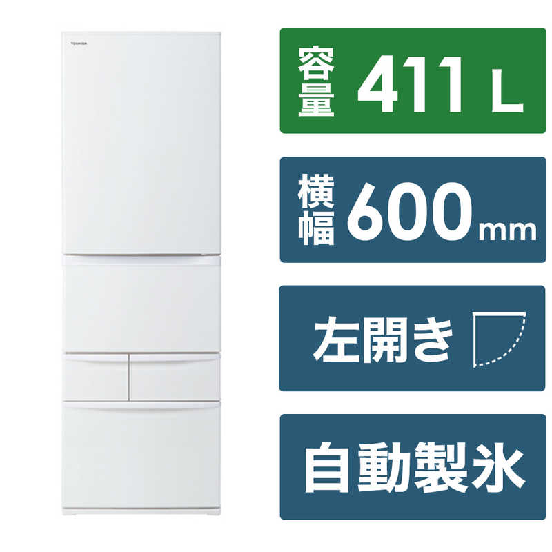 東芝 TOSHIBA 冷蔵庫 5ドア 左開き 411L GR-V41GHL-WU マットホワイト(標準設置無料) ¥137,483 |