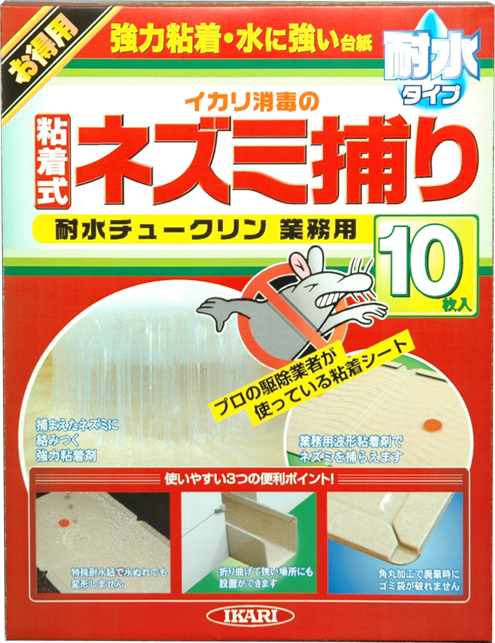 | | IKARI/イカリ消毒 業務用ネズミ捕り粘着シート 耐水チュークリン(10枚入) ¥953 |