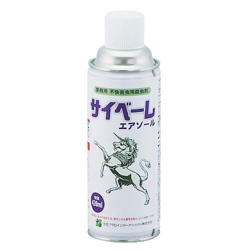 | サイベーレエアゾールとは? 優れた殺虫力をもつ業務用殺虫剤「サイベーレ0.5SC」が、手軽に使えるエアゾールタイプになって登場しました! ■サイベーレ0.5SCと同じ殺虫成分を使用しています。 ■アルコールベースの製剤のため、速乾性でベタ付きもありません。 ■窓ガラスにも曇らせずに薬剤散布することができます。 ・1本420ml入りです。 ★(1本単位)サイベーレエアゾール 1本(420ml)はこちら ★(ケース6本単位)サイベーレエアゾール (420ml×6本)はこちら 【こんな害虫駆除におすすめ】 ・窓枠にいるカメムシ駆除、窓のサッシ周りからくる虫の侵入防止 ・照明看板に集まる虫対策 ・窓ガラスに集まる ユスリカ・羽アリ・トビケラなど飛来虫の付着防止 ・部屋の中にいるアリ、クモ、カツオブシムシ、メイガ、チャタテムシ、アリガタバチなどの駆除に ●ご注意 ・屋内で使用する際には、火種となるコンロ、給湯器、ストーブなどは消してから使用してください。 ・また手や肌が直接触れる場所、小さなお子様が触れるような場所への散布はご遠慮ください。 確かな殺虫力・残効性に優れる 優れた殺虫力のあるサイベーレ0.5SCと同じ殺虫成分を使ったスプレーです。 残効性(持続性)があるので、不快害虫の待ち伏せ駆除用としてご利用いただけます。 ※薬液が染み込みやすいコンクリート面や木部では十分な駆除効果(待ち伏せ効果)が得られない場合がございます。 速乾性でベタ付かない 本品はアルコール製剤のため、噴射しても施工面がべた付かずに薬剤を処理でき、散布後もすぐに乾きます。窓ガラスに噴射しても曇らせずに薬剤散布ができます。 ※本品はほとんど匂いはありませんが、噴射直後はアルコール臭がします。 窓に飛んでくる虫、壁を歩く虫の駆除 窓ガラスの明かりに集まってくる虫(ユスリカ・羽アリなど)の対策におすすめです。屋内の壁をうろうろするチャタテムシ駆除にも使えます。 ※使用時はゴム手袋、マスク、保護メガネなどの保護具を着用し、手が触れる所への噴射は避けてください。 (使用箇所 例) 製造工場、商業施設、事務所、病院、学校、駅、空港、輸送コンテナ、住宅など (1)直接駆除 20〜30cm の距離から適用害虫に1〜2秒間直接噴射してください。 (2)待ち伏せ駆除 害虫の隠れ場所や通り道、侵入口に20〜30cmの距離から、約10cmの幅で1mあたり1〜2秒噴射してください。 ※薬液が染み込みやすいコンクリート面や木部では待ち伏せ効果はあまり期待できません。 (3)窓ガラスの虫駆除 ※窓ガラスの屋外面にてご使用ください。 窓から30cm程離して、均一に濡れる程度に噴射してください。 ページTOPへ | |