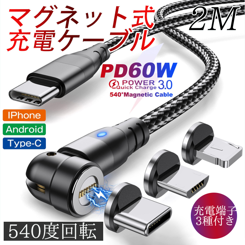 | | iPhone Lightning Type-C ライトニング Android iPad ライト付き 急速充電ケーブル サムスン 高性能 2M 3色 ¥250 |