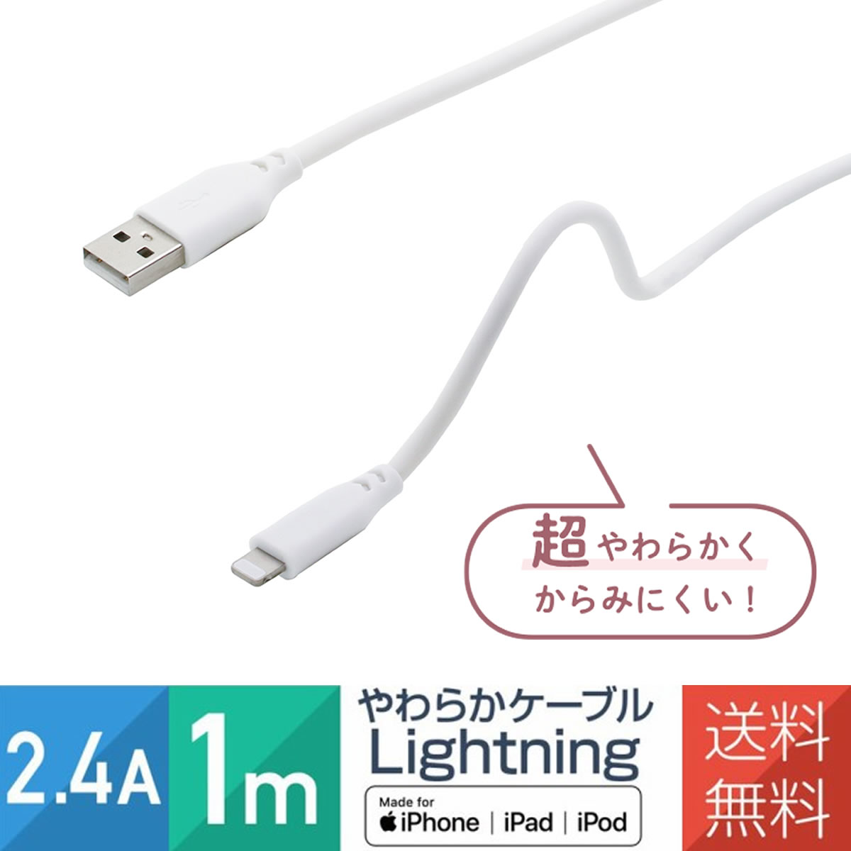 | 対応機種:iPhone14 iPhone13 iPhone12 iPhoneSE2 iPhone11 iPhone11Pro iPhone11ProMax iPhoneXS iPhoneXSMax iPhoneXR iPhoneX iPhone8 iPhone8Plus iPhone7 iPhone7Plus iPhoneSE iPhone6 iPhone6s iPhone6Plus iPhone6sPlus iPhone5 iPhone5s iPhone5c iPod touch( 第5世代) iPod nano( 第7世代) iPad( 第4世代) iPad mini iPad Air 他 ライトニングコネクタを搭載したiPhone / iPad コネクタ形状:ライトニング(オス) - USB A(オス) カラー:ホワイト ケーブル長:0.15m / 0.5m / 1m / 2m 製品保証:お買い上げ日より3ヶ月間の無償保証 ※レビュー記載で3大保証に加入いただけます。 ※商品不良の際の送料は当店が負担します。 備考:Apple(アップル)正規認証取得品 ※MFi認証品(Made for iPod / iPhone / iPad) 【配送】 こちらの商品は、2023年9月ヤマト運輸「ネコポス」サービス終了に伴い、 2023年10月より「クロネコゆうパケット(追跡可能メール便)」で発送いたします。 発送から3日~1週間程で郵便受けにお届けとなります。 お届け先が遠方や離島の場合、さらに日数を要する場合がございます。予めご了承ください。 ご注文の際にご指示がない場合は、環境保護の観点から最小限の簡易梱包で商品を発送させていただいております。何卒、ご理解・ご協力をお願いいたします。 また発送後の住所変更はできませんのであらかじめご了承ください。 メール便での発送の際には、代引きでのお届けが出来ません。 代引きでご注文いただきました際には、宅急便(通常配送料)での発送となります。 【※ご注意】 ※ご注文後の住所変更、注文内容変更、キャンセル等は受け付けておりません。 ※製品機能やデザインは、改良のため予告なく変更となる場合があります。 ※ケーブルを使用しての機器の故障は保証致しかねますので、ご注意ください。 ※こちらのページは『 USB - ライトニング 』のケーブルになります。『 ライトニング - USB Type-C 』は、こちらのページからご購入をお願いします。 ※種類を間違って購入されましても、開封済みのものは交換ができません。▼ Type-Cのライトニングケーブルはこちらから ※楽天問い合わせフォーム、メール等でも受付しております。 対応機種:iPhone14 iPhone13 iPhone12 iPhoneSE2 iPhone11 iPhone11Pro iPhone11ProMax iPhoneXS iPhoneXSMax iPhoneXR iPhoneX iPhone8 iPhone8Plus iPhone7 iPhone7Plus iPhoneSE iPhone6 iPhone6s iPhone6Plus iPhone6sPlus iPhone5 iPhone5s iPhone5c iPod touch( 第5世代) iPod nano( 第7世代) iPad( 第4世代) iPad mini iPad Air 他 ライトニングコネクタを搭載したiPhone / iPad コネクタ形状:ライトニング(オス) - USB A(オス) カラー:ホワイト ケーブル長:0.15m / 0.5m / 1m / 2m 製品保証:お買い上げ日より3ヶ月間の無償保証 ※レビュー記載で3大保証に加入いただけます。 ※商品不良の際の送料は当店が負担します。 備考:Apple(アップル)正規認証取得品 ※MFi認証品(Made for iPod / iPhone / iPad) 【配送】 こちらの商品は「クロネコゆうパケット(追跡可能メール便)」で発送いたします。 発送から3日~1週間程で郵便受けにお届けとなります。 お届け先が遠方や離島の場合、さらに日数を要する場合がございます。予めご了承ください。 ご注文の際にご指示がない場合は、環境保護の観点から最小限の簡易梱包で商品を発送させていただいております。何卒、ご理解・ご協力をお願いいたします。 また発送後の住所変更はできませんのであらかじめご了承ください。 メール便での発送の際には、代引きでのお届けが出来ません。 代引きでご注文いただきました際には、宅急便(通常配送料)での発送となります。 【※ご注意】 ※ご注文後の住所変更、注文内容変更、キャンセル等は受け付けておりません。 ※製品機能やデザインは、改良のため予告なく変更となる場合があります。 ※ケーブルを使用しての機器の故障は保証致しかねますので、ご注意ください。 ※こちらのページは『 USB - ライトニング 』のケーブルになります。『 ライトニング - USB Type-C 』は、こちらのページからご購入をお願いします。 ※種類を間違って購入されましても、開封済みのものは交換ができません。 | |
