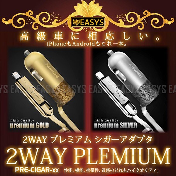 プレミアム シガーアダプタ ゴールド シルバー iPhone lightning Android microUSB 2WAY 充電 汎用 ¥2,580 |