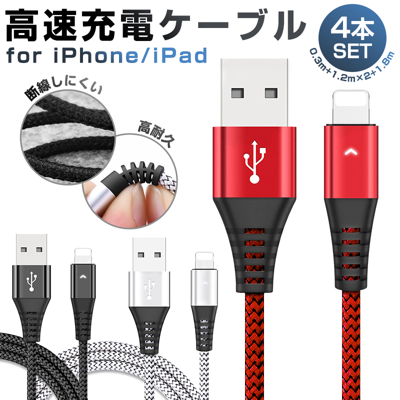 iPhone Lightning 2.4A高速充電ケーブル ライトニングケーブル 4本セット Lightningケーブル 長さ0.3m 1.2m*2 1.8m 高耐久 データ同期 ¥1,580 |