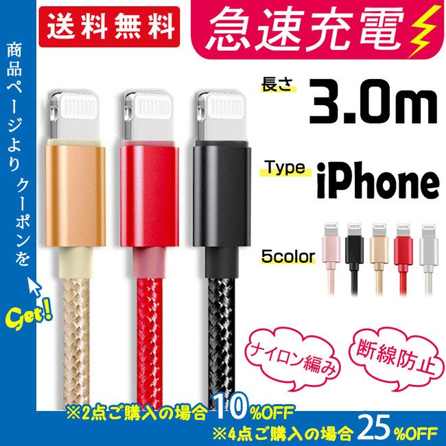 | iphone 充電 ケーブル【MFi認証】ライトニング 2M 3本セット 充電器 ケーブル 急速充電 lightning アイホン充電 断線防止 超高耐久 iPhone 13/13 Pro/12/11/X/8/8plus/7/6/ iPad 各種対応 ¥799 |